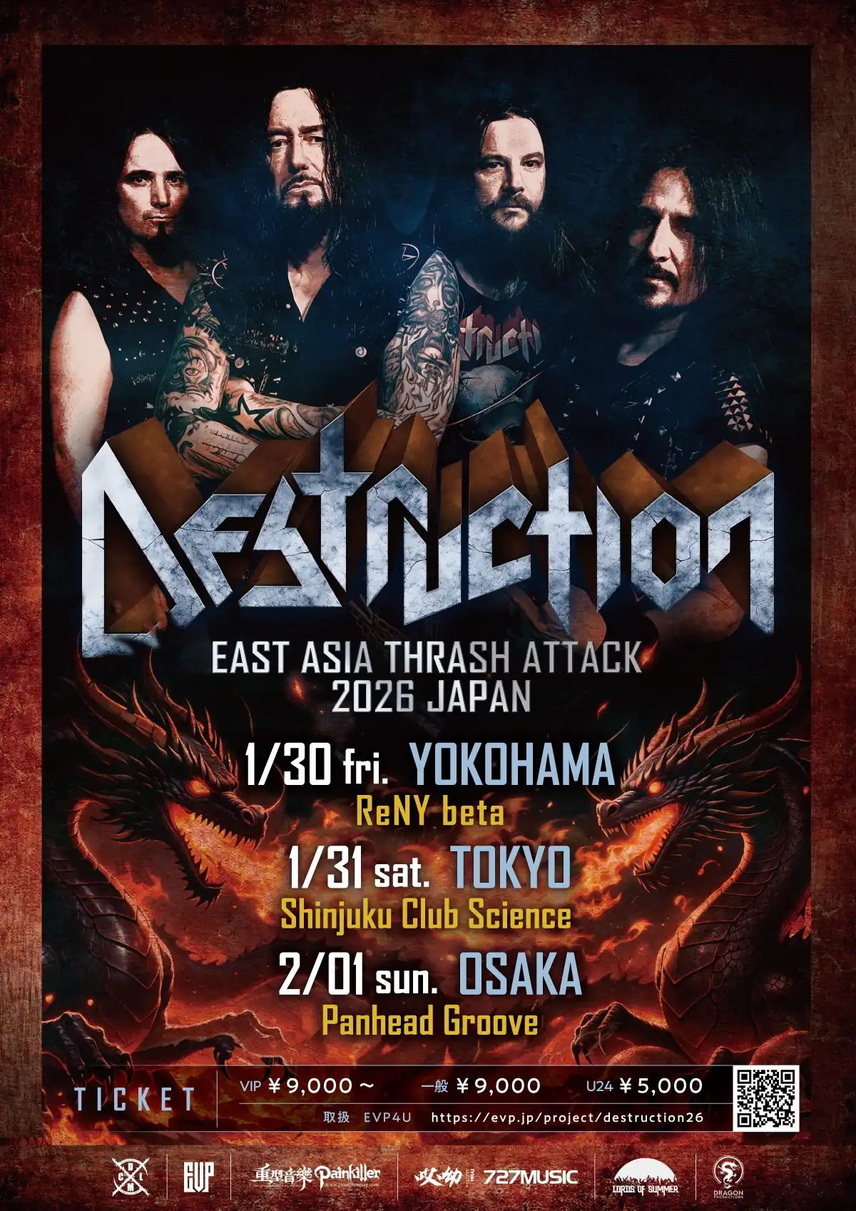 ジャーマンスラッシュ三羽ガラスの一つ「Destruction」が8年ぶりに日本へ帰ってくる! 4人編成の彼らによる強烈なステージを受け止めよう!